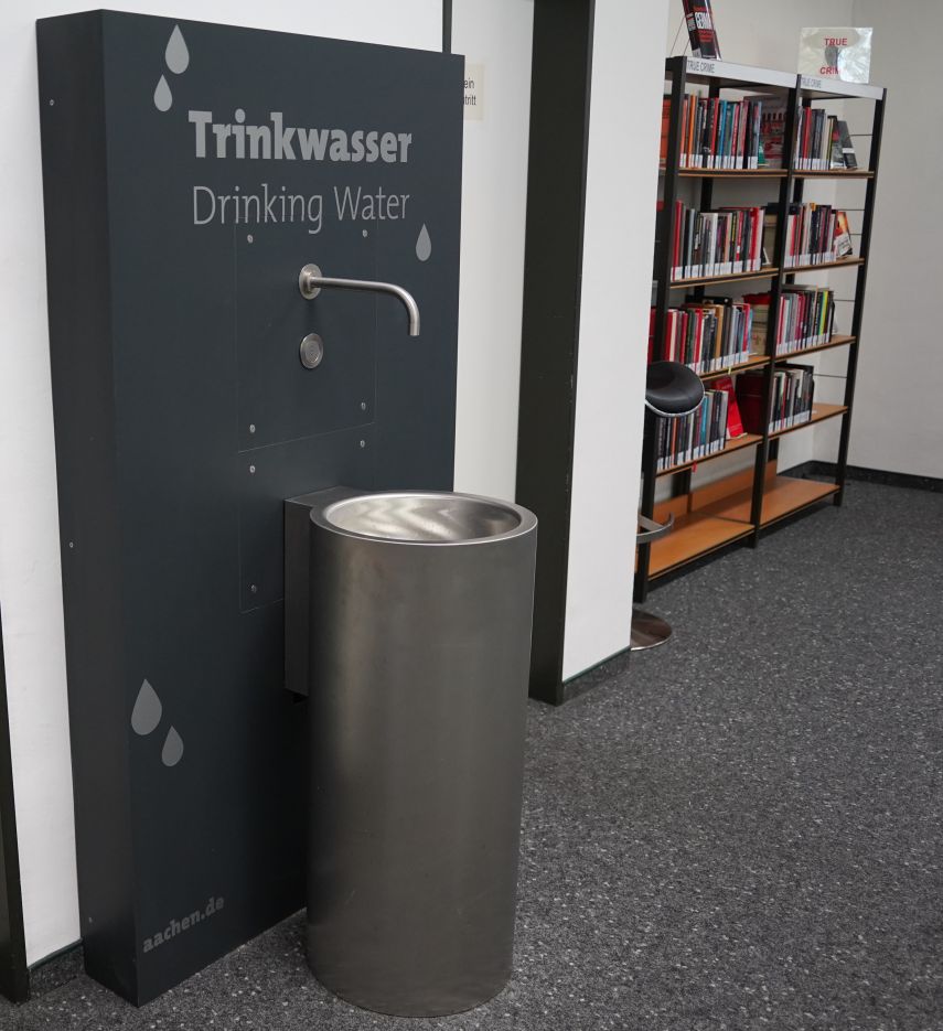 Mit dem neuen Spender in der Stadtbibliothek, einem zentralen und viel frequentierten Ort, erweitert die Stadt Aachen ihr bestehendes Versorgungsnetz.