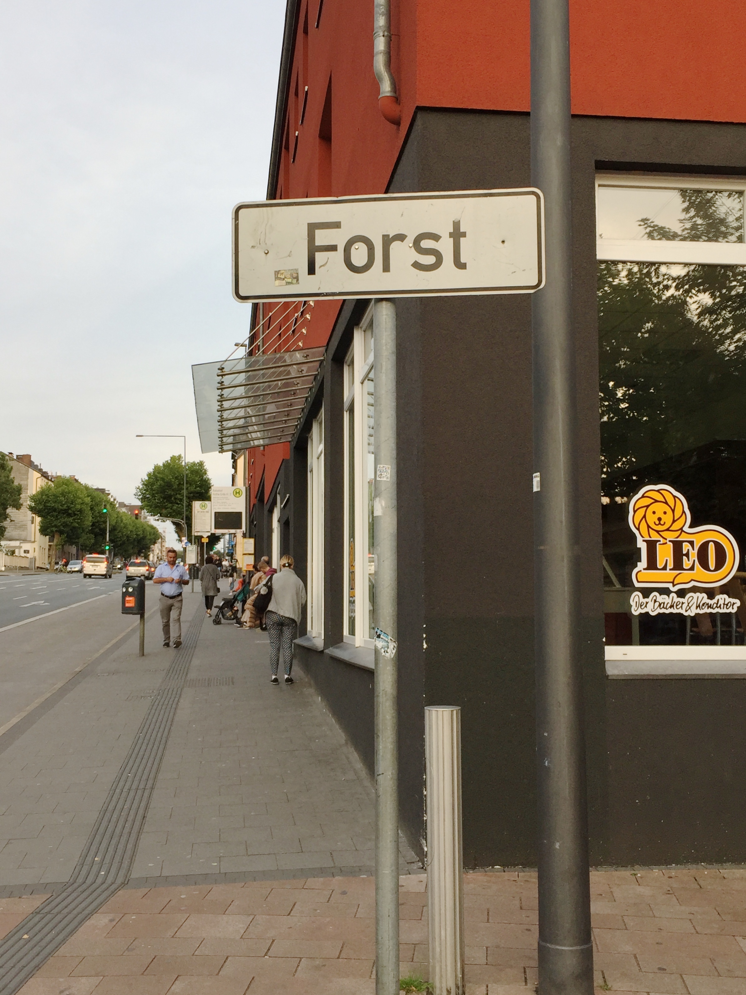 Der Aachener Stadtteil Forst hieß früher Schönforst und befindet sich zwischen dem Frankenberger Viertel und Rothe Erde. Forst wurde am 1. April 1906 (als zweiter Ort nach Burtscheid*) nach Aachen eingemeindet. Warum schreibe ich über Forst? Weil ich da wohne. Jedenfalls wohne ich gewissermaßen (zwar nicht direkt, aber:) hinter dem Schild. Steht das Schild da überhaupt richtig?